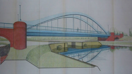 Der Brückenneubau wird zweispurig. Er erhält einen sicheren Rad- und Fußgängerüberweg auf der nördlichen, einen Gehweg auf der südlichen Seite. Diese Brücke wird höher als die alte sein, mehr als 5 Meter über dem Kanal, damit in Zukunft die neuen Containerschiffe darunter durchfahren können.
