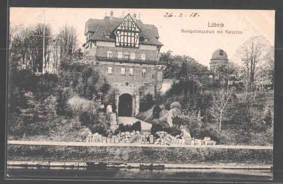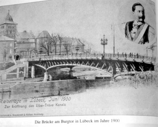 Die Lubeca an der Hubbrücke/ Burgtor (das weisse Band über den Kanal durchschnitt Kaiser Wilhelm) |