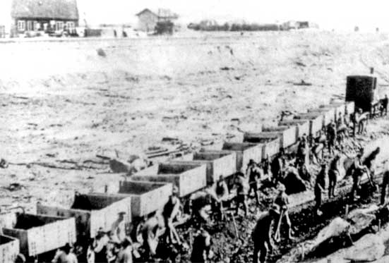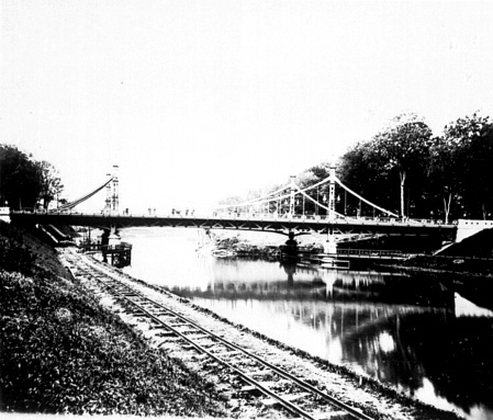 Bau des Kanals an der Mühlenbrücke um 1900, deutlich zu sehen sind die Gleise der Arbeitsbahn |