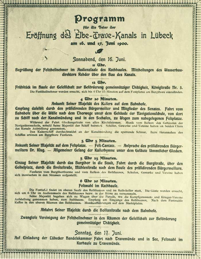 Programm der Einweihungsfeierlichkeiten des Kanals am 16./17. Juni 1900 |