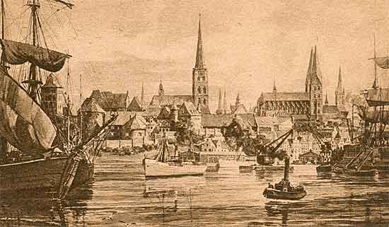Endpunkt des Elbe-Trave-Kanals : Lübecker Hafen um 1900 |