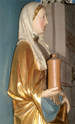 Die Statue der Namenspatronin Maria Magdalene aus dem 15. Jahrhundert in der rechten Hand hält sie ein Salböl-Gefäß |