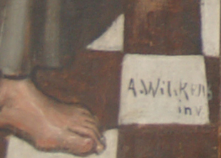 Am rechten Fuß von Abraham befindet sich ein Hinweis auf den möglichen Maler der neun Bilder : A.Wilcken in V. |