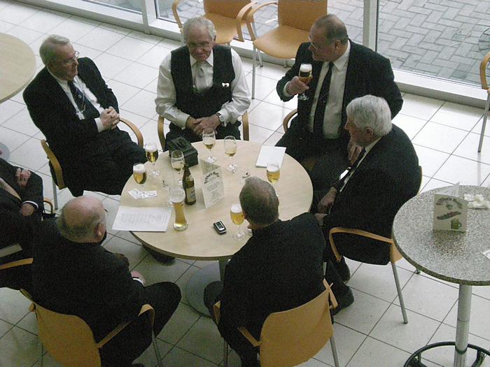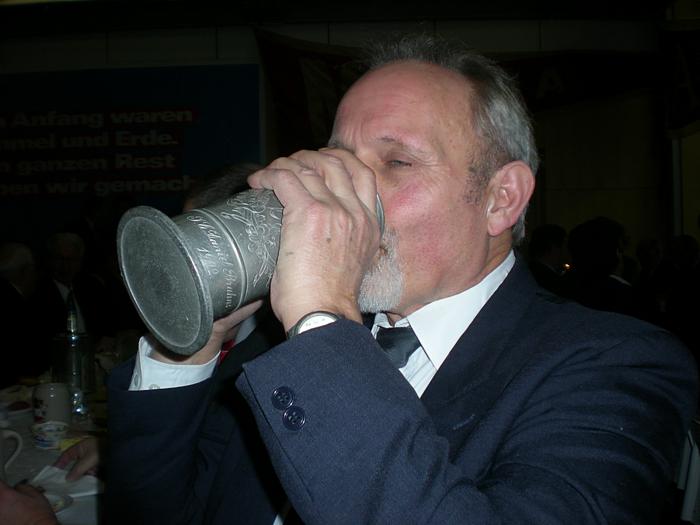 Am Vorstandstisch ist man auch schwer begeistert : Ältermann Haase kriegt einen eingeschenkt |