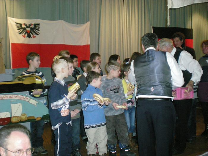 Part und singen Lieder auf Plattdeutsch.Sie werden anschließend traditionell wie seit hunderten von Jahren mit Brezeln beschenkt. |