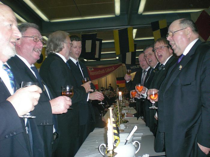 Das Fest der Kringelhöge fand bis zu seiner Schließung im "Katholischen Gesellenhaus" bis Anfang der 1990er statt. Eine neue Bleibe war dann der historisch angemessene Festsaal der "Gemeinnützigen Gesellschaft". Allerdings hatte dies ein jähes Ende, als im Jahr 2009 die über 500 Jahre alte Tradition der Mitglieder und Gäste der Stecknitzfahrer-Gilde, ihr Essen selbst mitzubringen, verboten wurde. Die "Gemeinnützige berief sich auf EU-Richtlinien, Salmonellengefahr u.ä., um die Restauration und Verköstigung selbst betreiben zu können. Tradition und Charme der Veranstaltung waren dahin, das Frühstück genormt und nicht ausreichend. Dies veranlasste den Vorstand, ein neues Domizil zu suchen: das Gebäude der Industrie- und Handelskammer. Hier konnte zur Erleichterung aller wieder das gewohnte Fest gefeiert werden. |