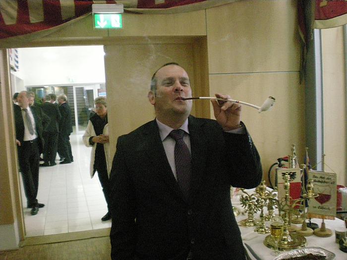 Endlich : die traditionellen Tonpfeifen werden unter Dampf gesetzt, der Taback wird gestellt |