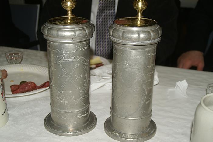 Zwei der alten Zinnkrüge von 1794 und 1837 |
