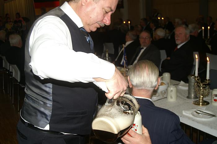 Sie füllen die Braunbierkrüge nach, auf dass keiner "trocken" sitze |