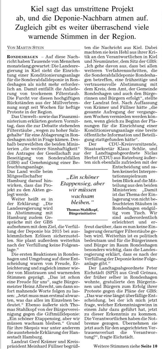 Großer Teilerfolg gegen Pläne zur Nutzungserweiterung der Deponie