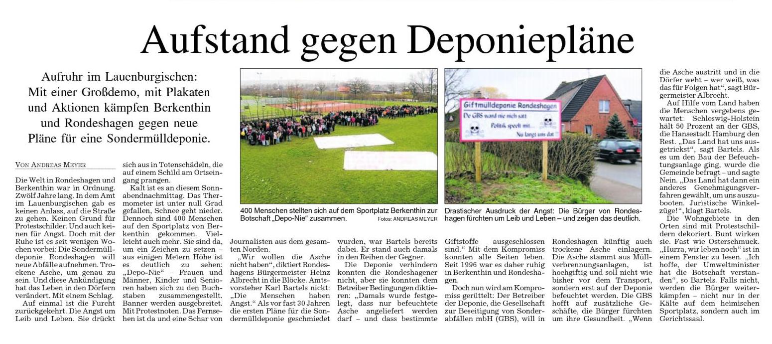 LN-Artikel über den Deponie-Prostest am Samstag, 22.03.2008