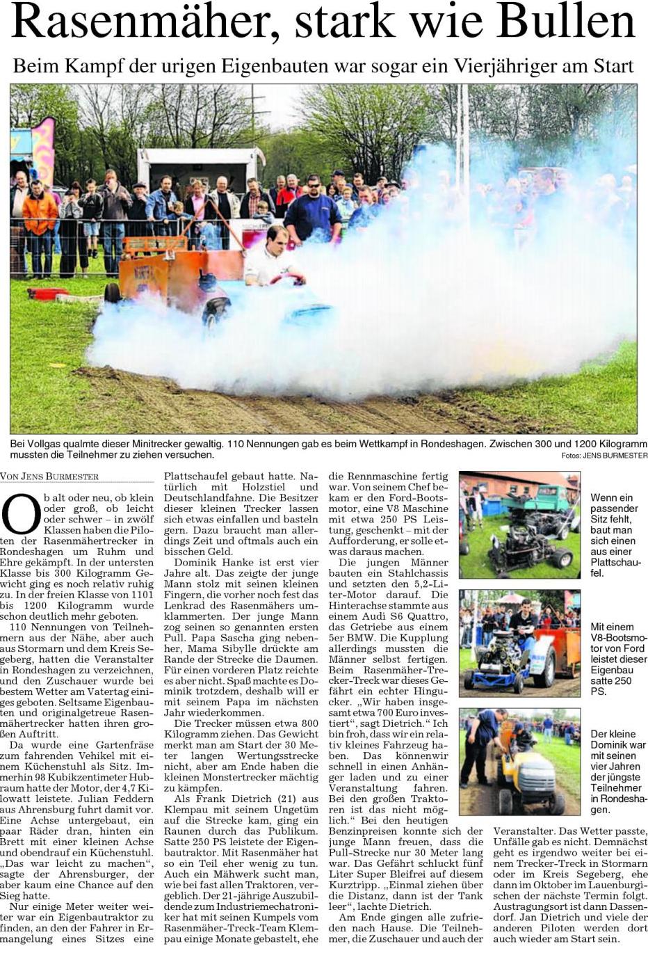 Bericht der Lübecker Nachrichten vom 03.05.2008