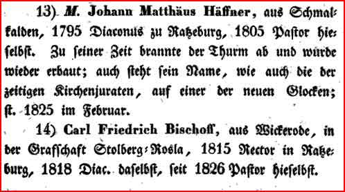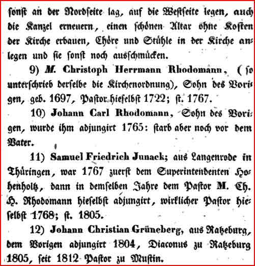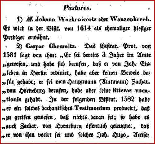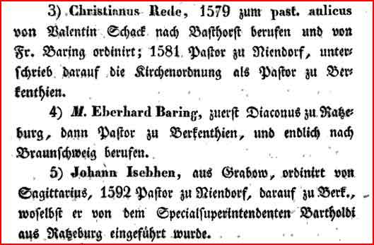 Informationen zu Berkenthiner Pastoren aus dem Buch von Johann Jacob Burmeister (1832) |