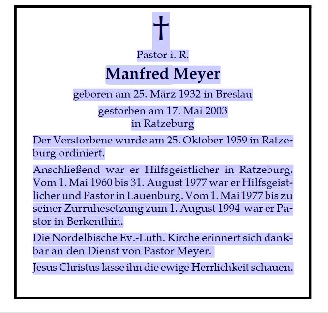 Die evangelischen Pastoren (ab ca. 1530) an der Kirche in Berkenthin sind weitgehend bekannt. Einige wenige habe ich in den Rondeshagener Unterlagen eher zufällig gefunden und dazugehörige Quelle mit eingebunden; weitere wurden im Buch über die lauenburgische Kirchengeschichte von Johann Jacob Burmeister (1832) aufgelistet. Einige sind auf dem Kirchfriedhof begraben. Die restlichen Namen stammen von Pastor Wolfgang Runge. Nicht zugänglich sind Namen aus der vorreformatorischen Zeit zwischen 1250 und 1520 - bisher... Allerdings hatte sich der Besitzer vom Gut Rondeshagen, Marcus Tode, um ca 1520 zum Protestantismus bekannt .....