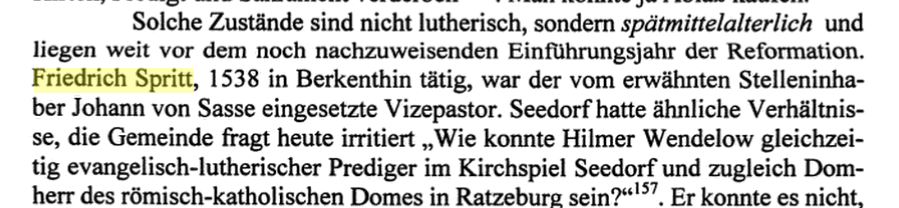 "Da nun Marcus Tode [...] Patron der Kirche zu Berkenthin, [...] sich schon 1520 vom Bischof abgewandt hatte , ist anzunehmen, dass Marcus Tode schon 1520 zum Protestantismus übergetreten war. Die auffallend späte Durchführung der Reformation im Herzogtum Lauenburg wird allerdings erst in der Kirchenordnung vom Jahre 1585 offiziell bekundet.