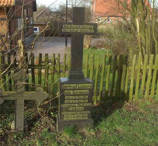 Grab Gertrud Lüders, geb. Harmsen, geb. d. 25. Mai 1851, gest. d. 17. Mai 1913 Christian Andreas Lüders, Pastor hiesiger Gemeinde, geb. 22. Nov. 1844, gest. d. 15. Dez. 1923 |
