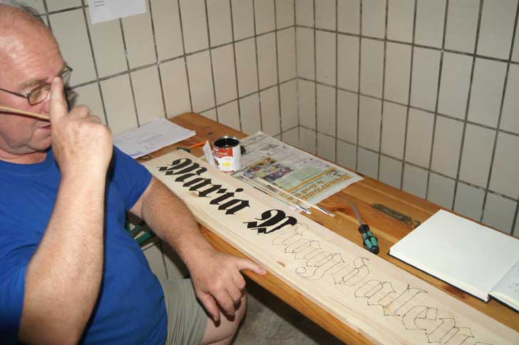 Bürgermeister Hans-Joachim Speth beim Malen eines Namensschildes |