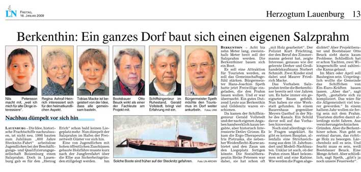 LN-Artikel vom 16.01.2009 : Nachbau eines Stecknitz-Schiffes |
