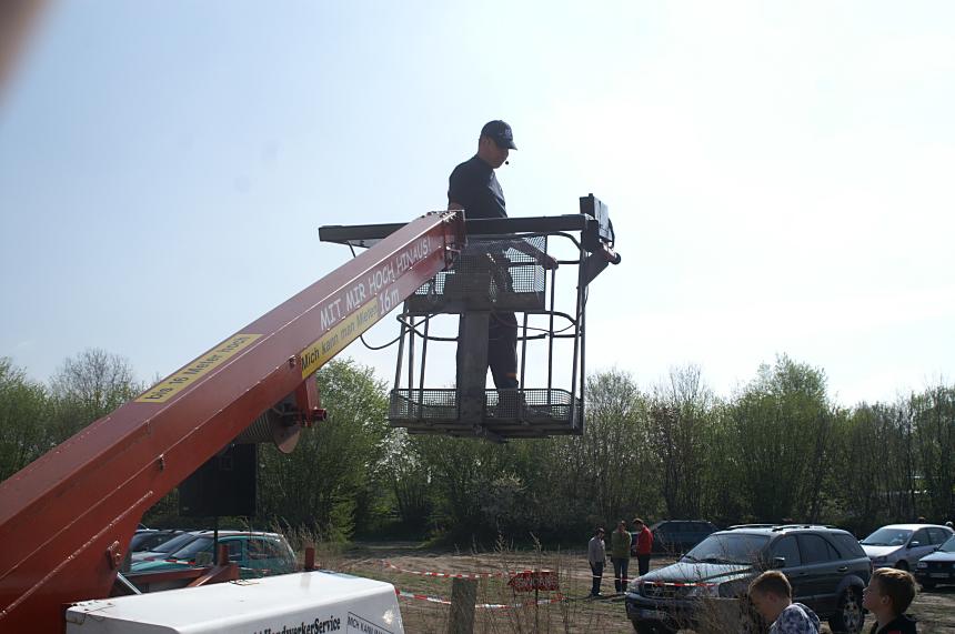 | "Korl" auf der Hebebühne für einen Blick von oben |