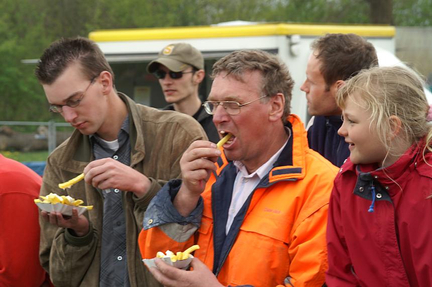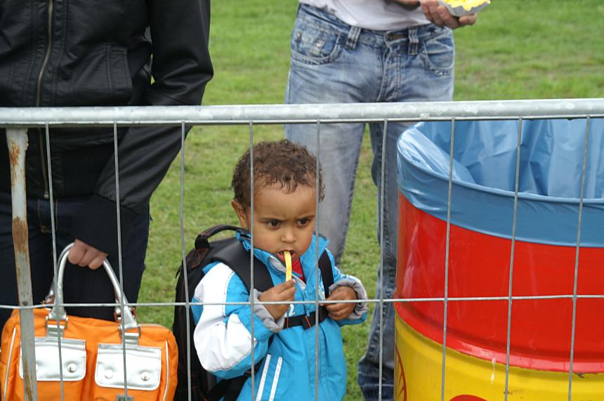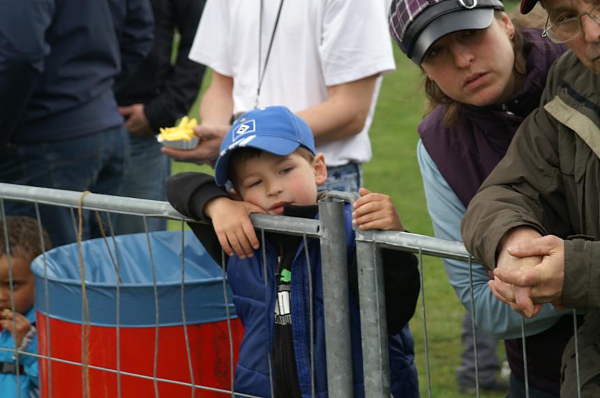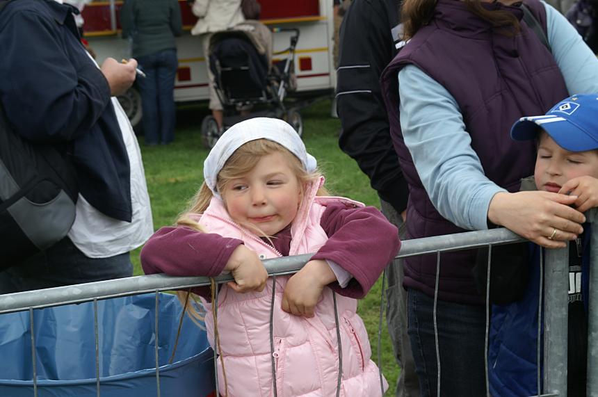 Fahrer verschwindet im Qualm, Regenschirme künden von Schietwetter |